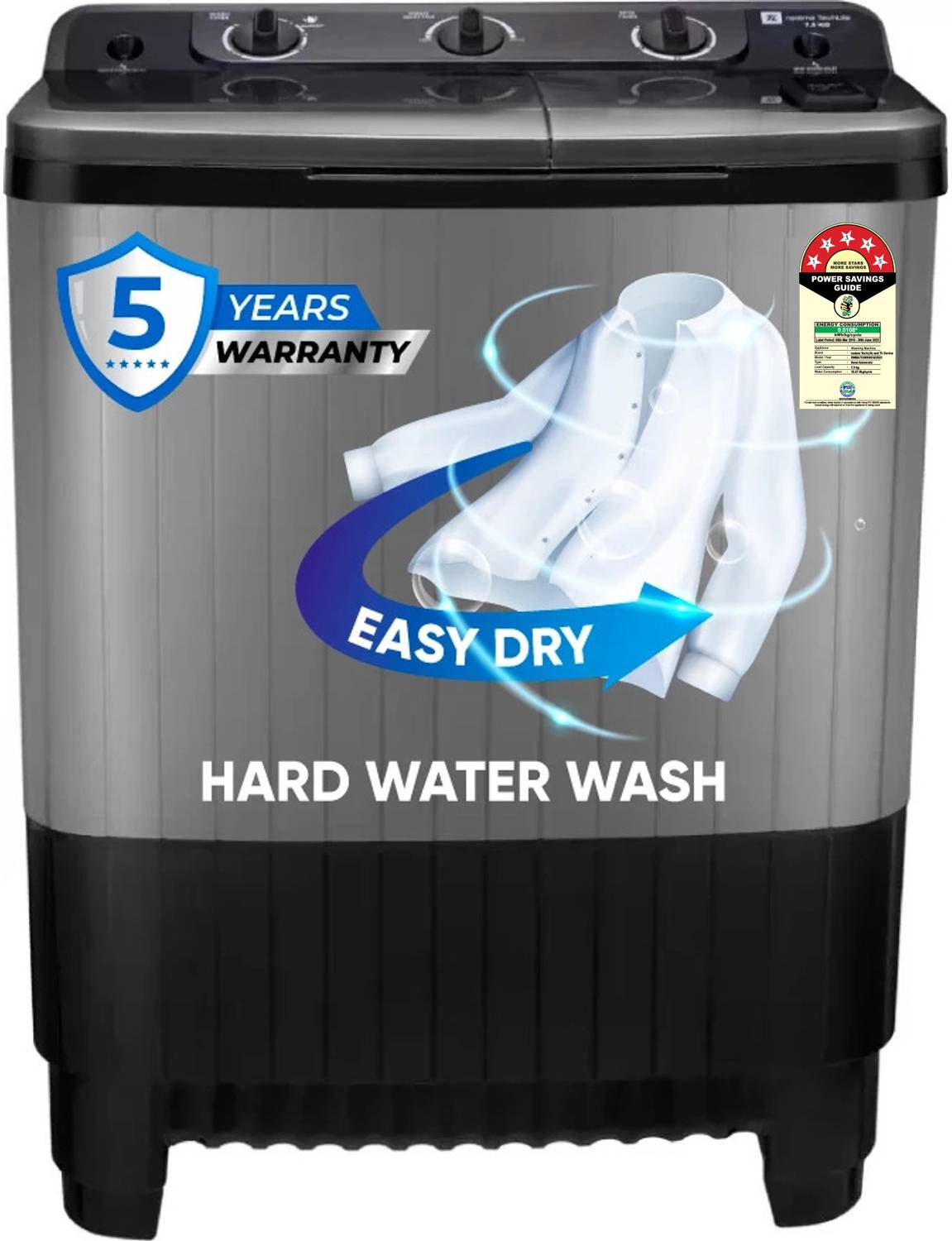 Realme realme TechLife 7.5 kg 5 Star Rating Semi Automatic Top Load Washing Machine Black, Grey (RMSA755NNNDG)