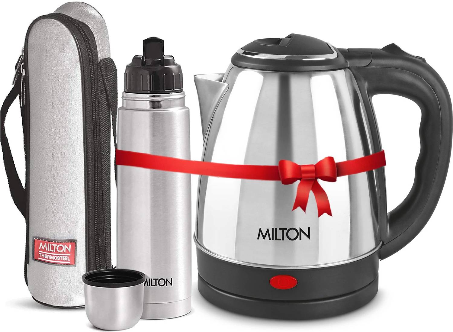 MILTON MILTON Go Electric Stainless Steel Kettle, 2 Litres and Flip Lid Bottle, 750 ml 2750 ml Steel Flask (Pack of 2, Silver)