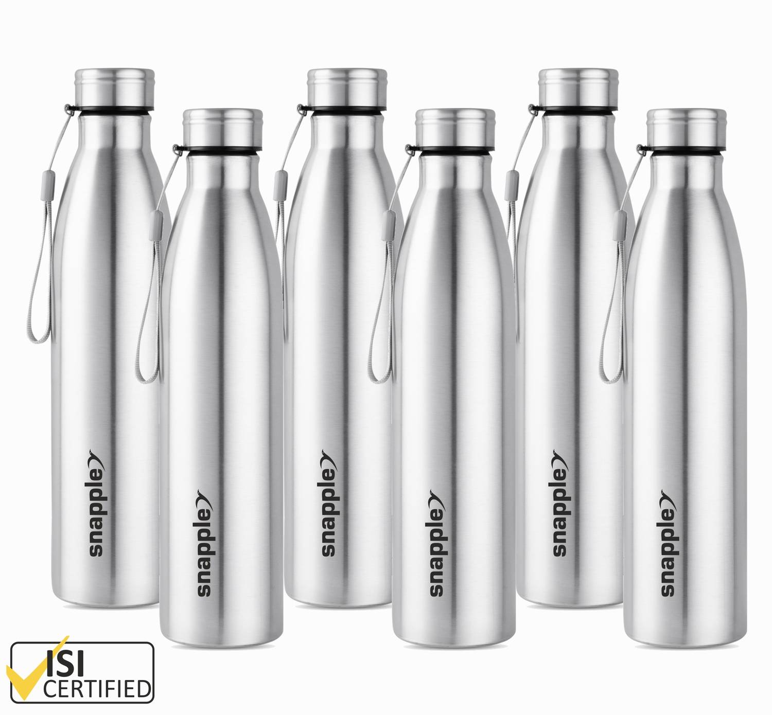 Snapple Snapple TAG Stainless Steel Water Bottle Single Wall ISI Certified 1000 ml Steel Bottle (Pack of 6, Silver)